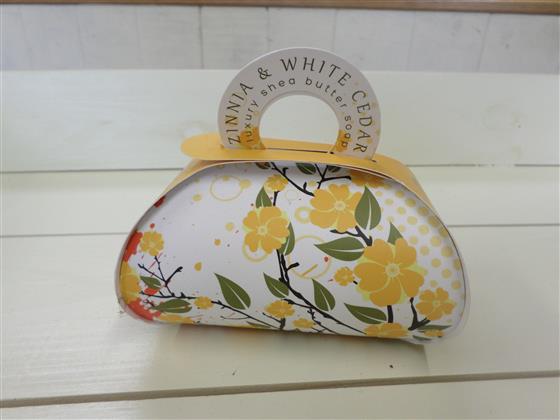 These silky rich shea butter soaps are a delight to use. Beautifully designed and exquisitely perfumed with fine fragrance. A brightly floral heart with oceanic lily, white jasmine and violet leaf underpinned with amber and musky base notes. 240g Soap