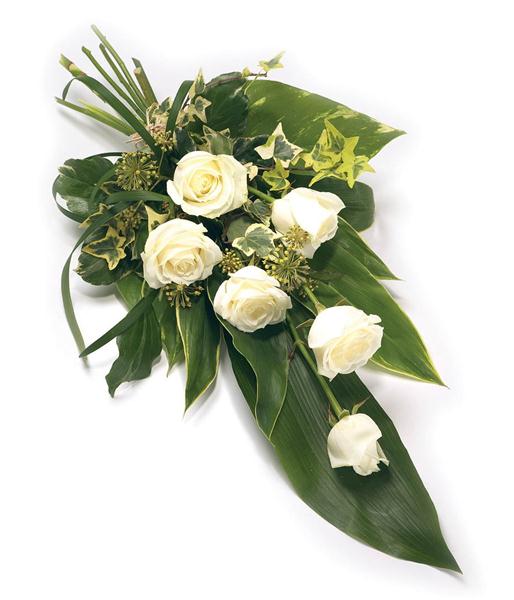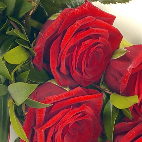 A classic and elegant sheaf of roses and complementary foliage tied with a ribbon. Size: 61cm (24").